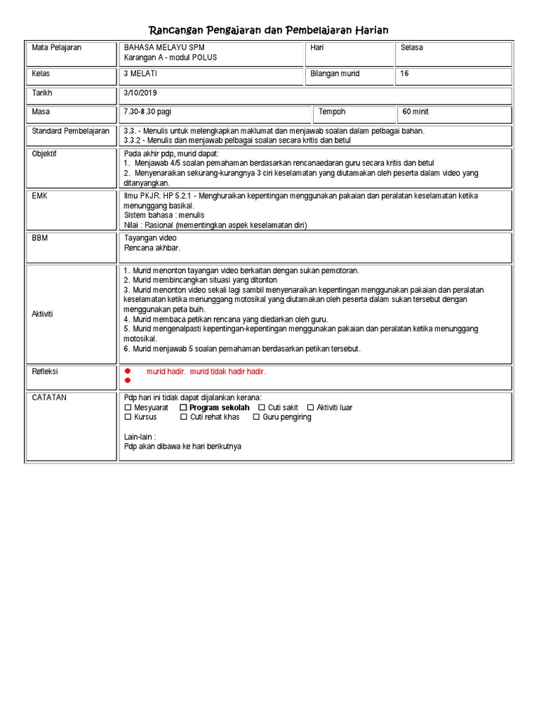 Rancangan Pengajaran Harian Bahasa Melayu Tingkatan 1 Pdf